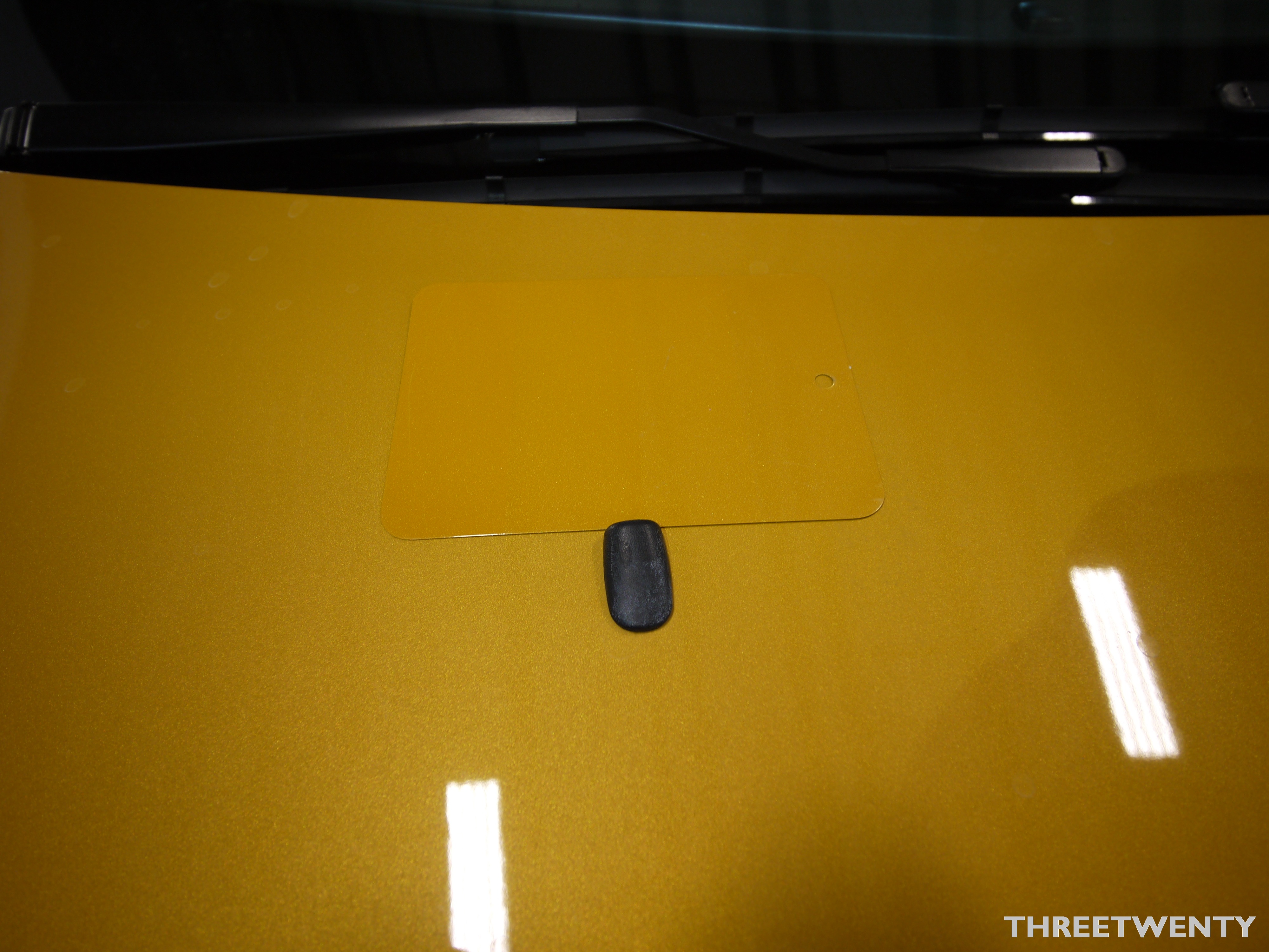Just after lunch today I stopped in at the body shop where the side skirts are, to let the painter compare some colour samples to the Focus. The issue with this paint – Yellow Blaze (NQ) – is that it’s a tri coat. In between the base and clear coats is a pearl coat, which makes the car look fantastic in the sun but also makes it a pain to match painted parts to.